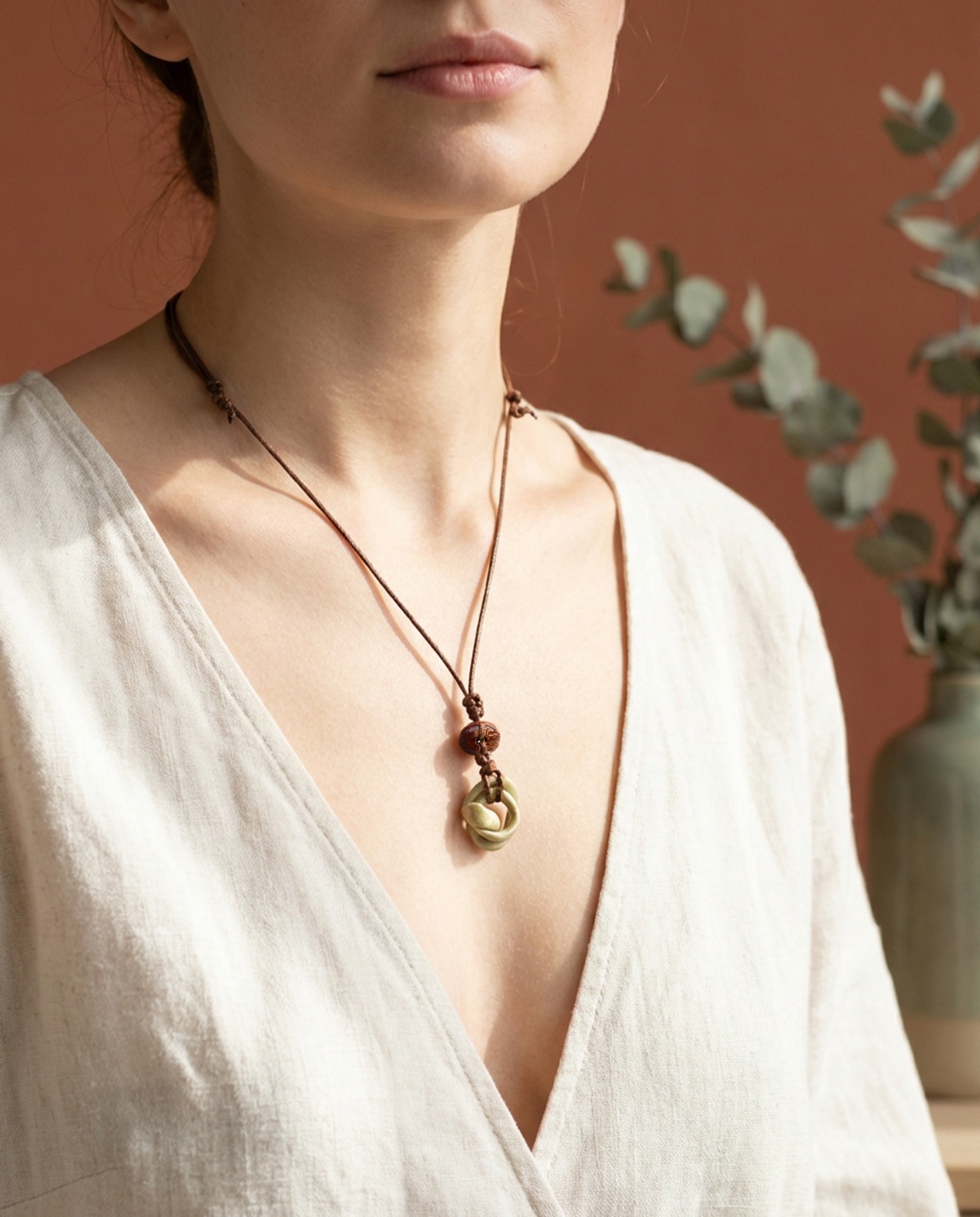 – Adjustable brown cord with delicate knot detailing lets you personalize the length.
